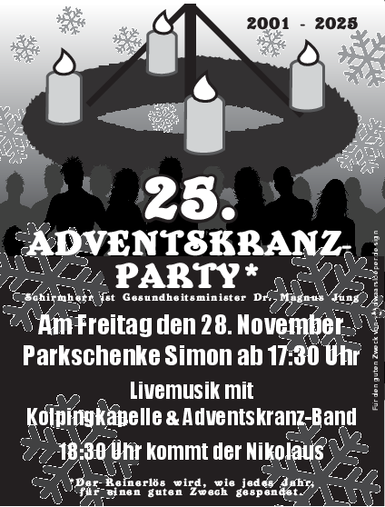 Am Freitag, dem 28. November 2025, lädt das Adventskranzteam zur 25. Adventskranzparty nach Nonnweiler ein.