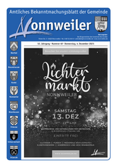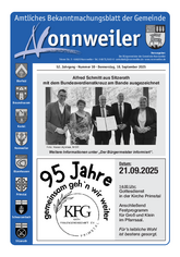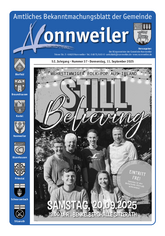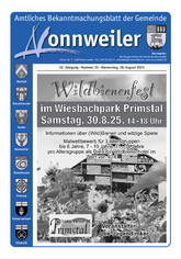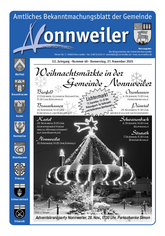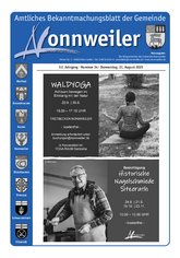 Das Amtliche Bekanntmachungsblatt der Gemeinde Nonnweiler erscheint jeden Donnerstag und wird durch die Gemeinde Nonnweiler allen Haushalten unentgeltlich zugestellt.