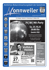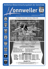 Das Amtliche Bekanntmachungsblatt der Gemeinde Nonnweiler erscheint jeden Donnerstag und wird durch die Gemeinde Nonnweiler allen Haushalten unentgeltlich zugestellt.