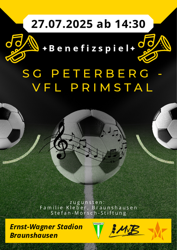 Der Musikverein eröffnet das Programm um 14.30 Uhr. Um 15 Uhr startet das Benefizspiel der SG Peterberg gegen den VfL Primstal. Von 17-18 Uhr ist wieder der Musikverein zu hören. Für unsere Kids steht neben dem Spielplatz auch eine Hüpfburg bereit. Der hungrige Magen, den man auf jeden Fall mitbringen sollte, kann mit Kaltgetränken, Kaffee, Kuchen oder Gegrilltem gefüllt werden.